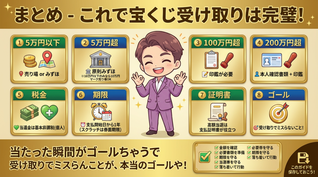 まとめ:宝くじ当選金の受け取りはこれで完璧!