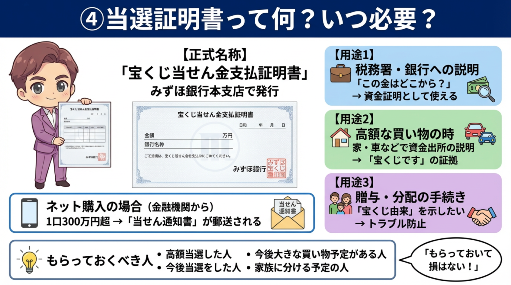 - 高額当選は証明書(支払証明書/通知書)が役立つ