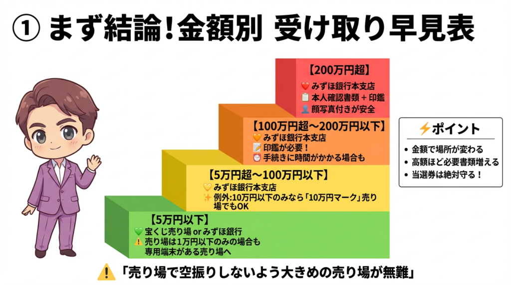 当選金額で変わる受け取り場所(売り場・みずほ)