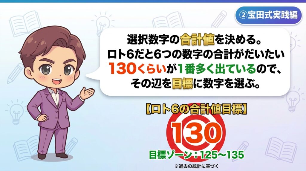 宝田式とは過去の当選数字を6つの指標で分解し、