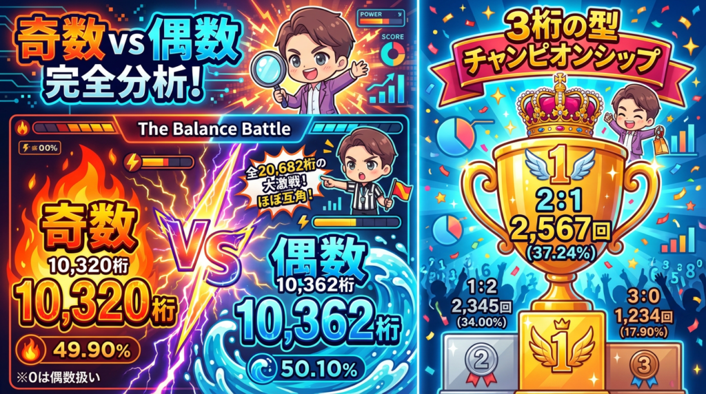 • 偶数:10362(50.10%)(※0は偶数扱い)