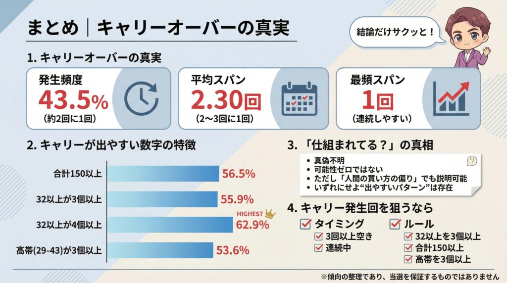 - 高帯(29-43)が3個以上:キャリー率53.6%