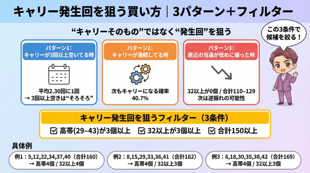 キャリーは連続しやすいから、「そろそろキャリーが出るかも」というタイミングを予測できる。