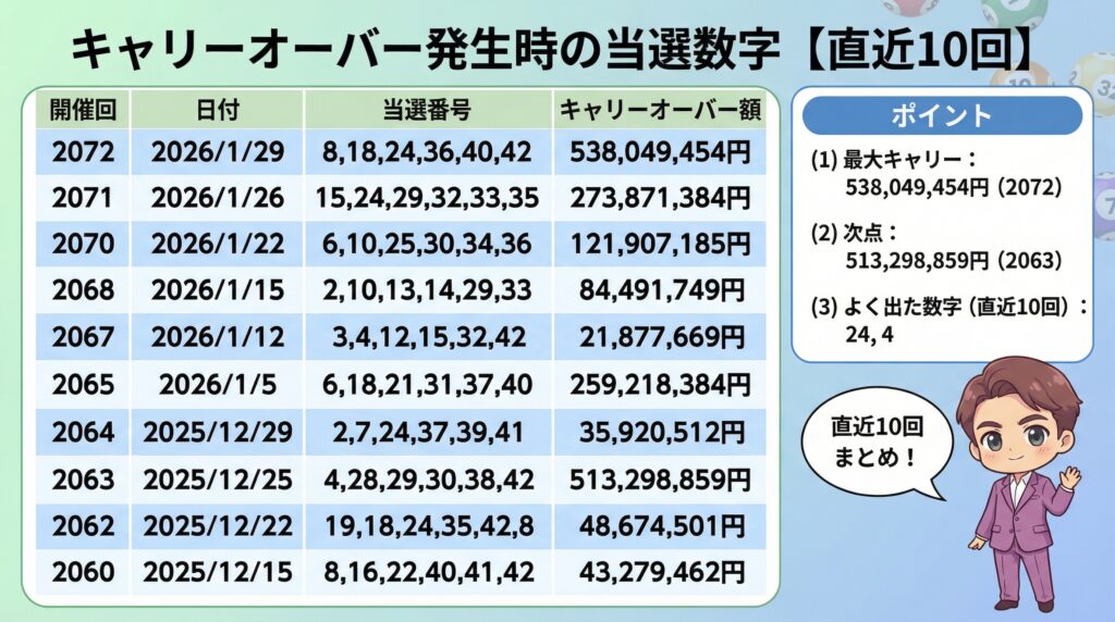 | キャリー発生回 | キャリーオーバーが発生した回 |