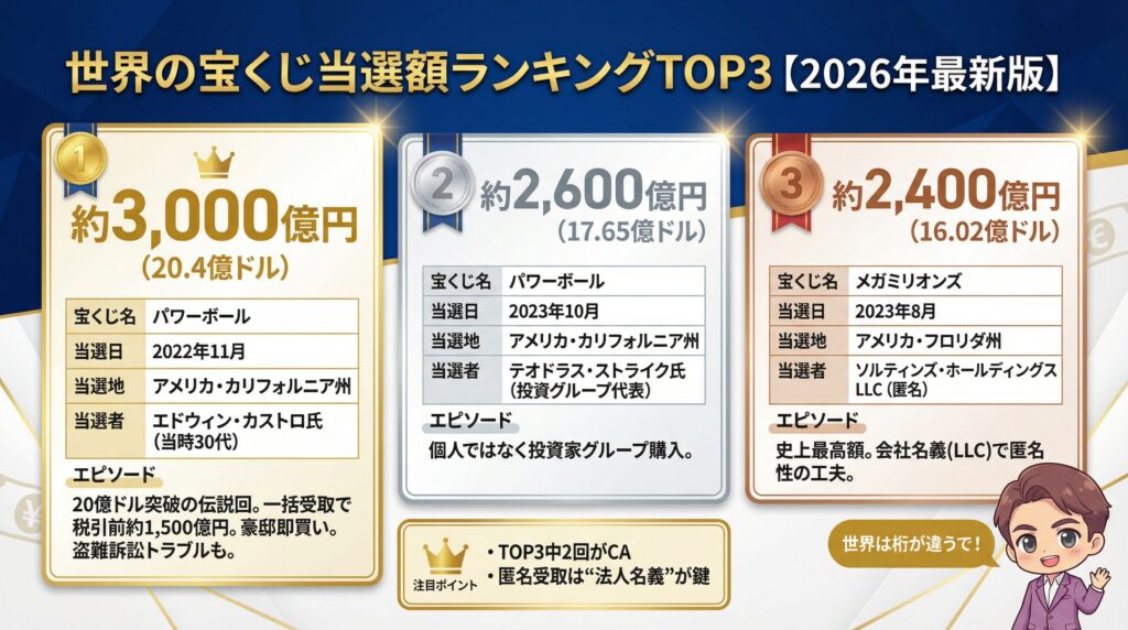 世界の宝くじ当選額ランキングTOP3【2026年最新版】