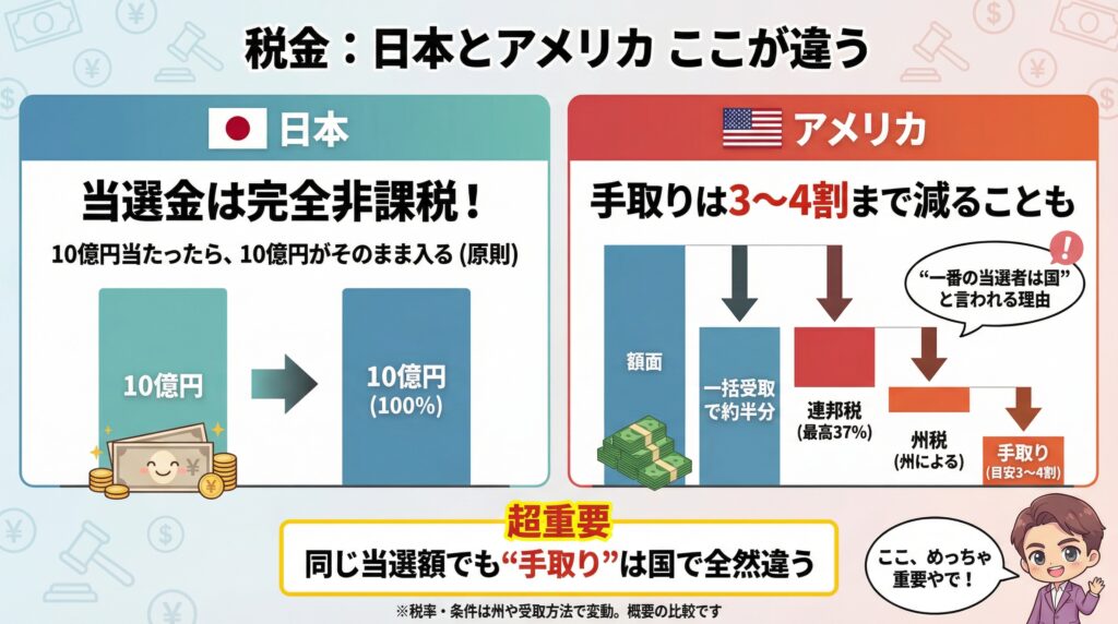 ここからが本番や。日本とアメリカ、どっちの宝くじが「夢がある」んか比較していくで。