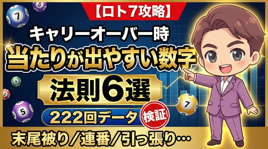 【ロト7攻略】キャリーオーバー時に当たりが出やすい数字の法則6選|222回のデータで判明